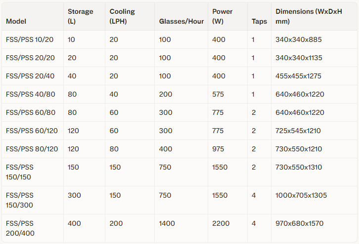 This progression lets businesses pick a model that matches exact footfall from 100 glasses/hour for small offices to 1400 for factories—without wasting space or power.